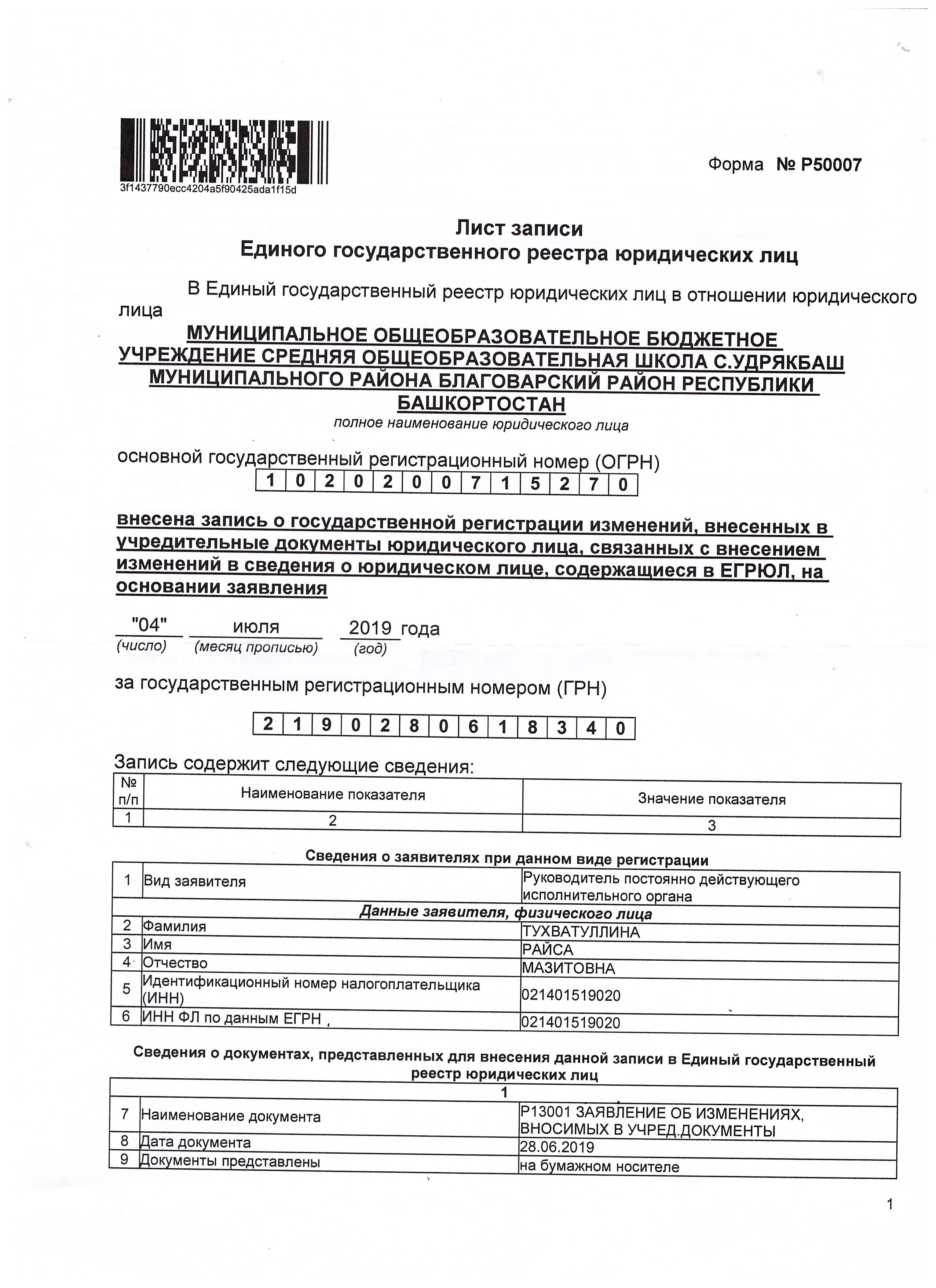 Муниципальное общеобразовательное бюджетное учреждение средняя общеобразовательная школа с.Удрякбаш муниципального района Благоварский район Республики Башкортостан